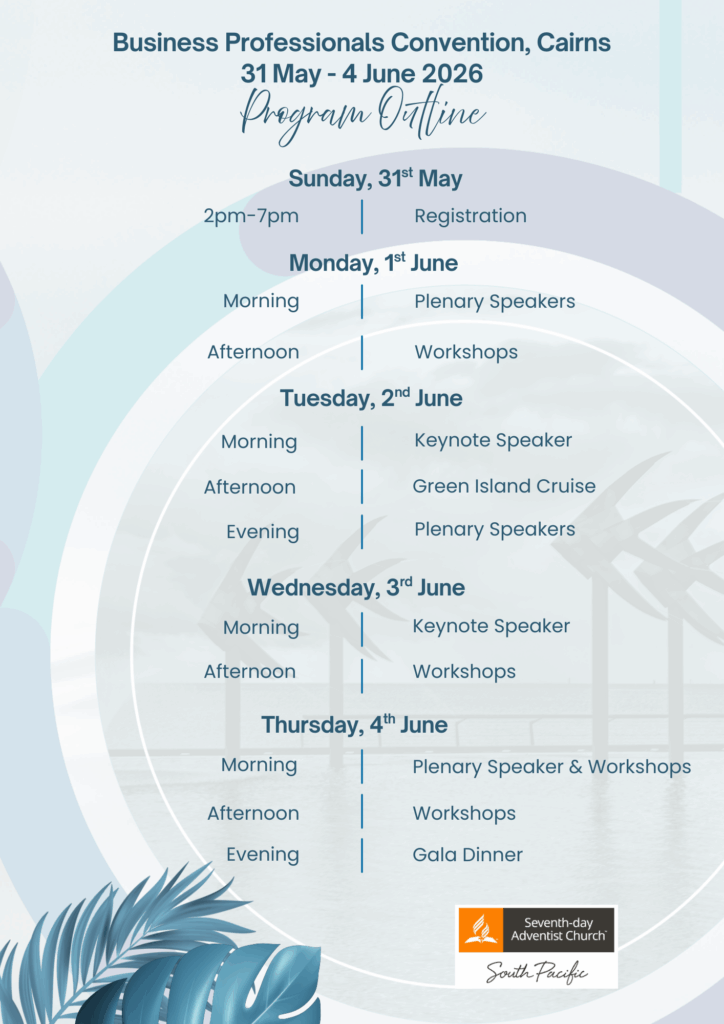 This Convention is specifically designed for employees working in finance and commercial sectors of the Seventh-day Adventist Church in the South Pacific.